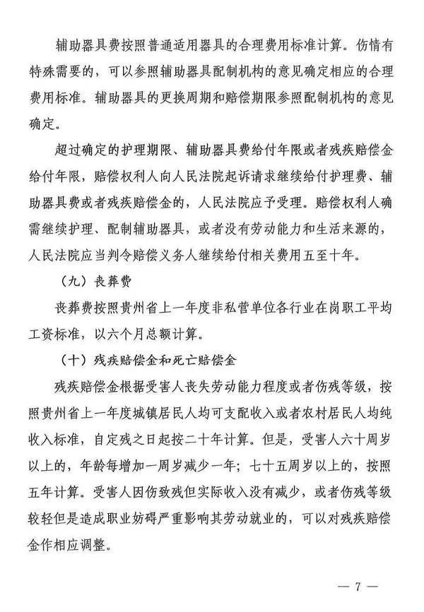 前言:近日,贵州省高级人民法院、贵州省公安厅发布《关于印发<贵州省道路交通事故损害赔偿标准>的通知》,对相关标准的适用、人身损害及财产损害的具体赔偿标准进行了明确,并且同时废止了《贵州省高级人民法院关于审理涉及机动车交通事故责任强制保险案件若干问题的意见》第五条关于交强险赔偿不分则不分项的规定,要求在交通事故损害赔偿纠纷中按过错责任确定赔偿比例。规定自2021年1月1日起施行。